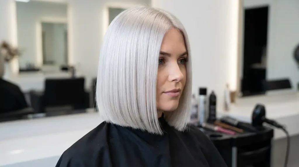 There’s nothing subtle about a platinum blonde blunt bob. This ear-length bob in an ultra-light, cool-toned blonde is a total showstopper. The precision of the blunt line combined with the dramatic color creates maximum impact. Keep in mind that platinum requires maintenance—regular toning appointments to keep the color bright and a good purple shampoo to prevent brassiness. But if you’re ready for the commitment, it’s absolutely stunning.