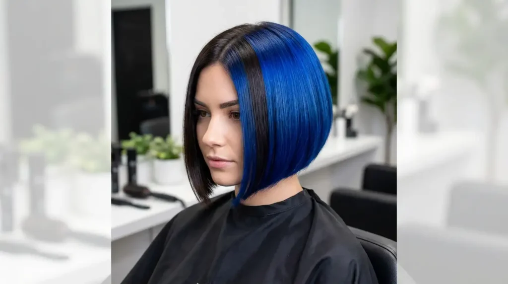 Take the asymmetrical bob concept and add color blocking—one side in your natural color, the other side with a bold contrasting shade. Or try a half-and-half color scheme with the back in one tone and the front in another. This ultra-modern take on the ear-length bob is for the truly adventurous. It requires a skilled colorist and stylist who can balance both the cut and the color placement.