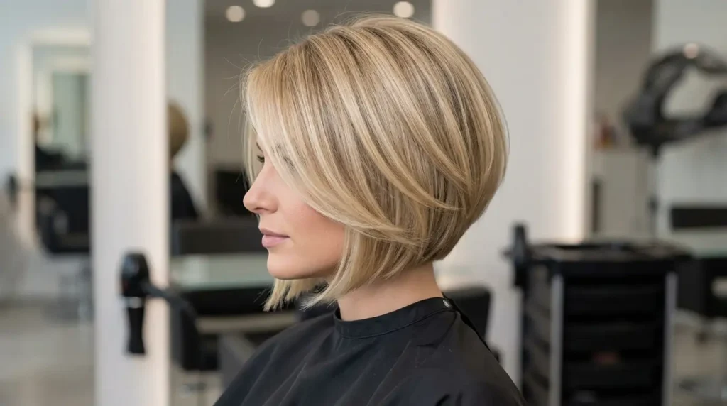 The stacked bob is your best friend when you’ve got fine hair. The graduated layers at the back create instant volume, while the longer front pieces keep it from looking too soccer-mom. What I love about this cut is how the stacked shape gives you natural lift without needing a ton of product. Your stylist will use a razor cut technique on the ends to create that piecey, modern texture. Style it with a volumizing mousse at the roots and a round brush during your blow-dry, and you’ll get that coveted fullness that lasts all day.