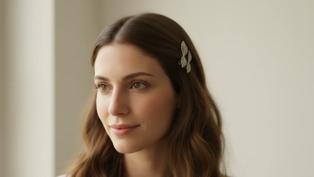 Create loose waves throughout your hair, then pin back one or both sides with decorative clips or bobby pins. This gives you the best of both worlds – texture and face-framing.