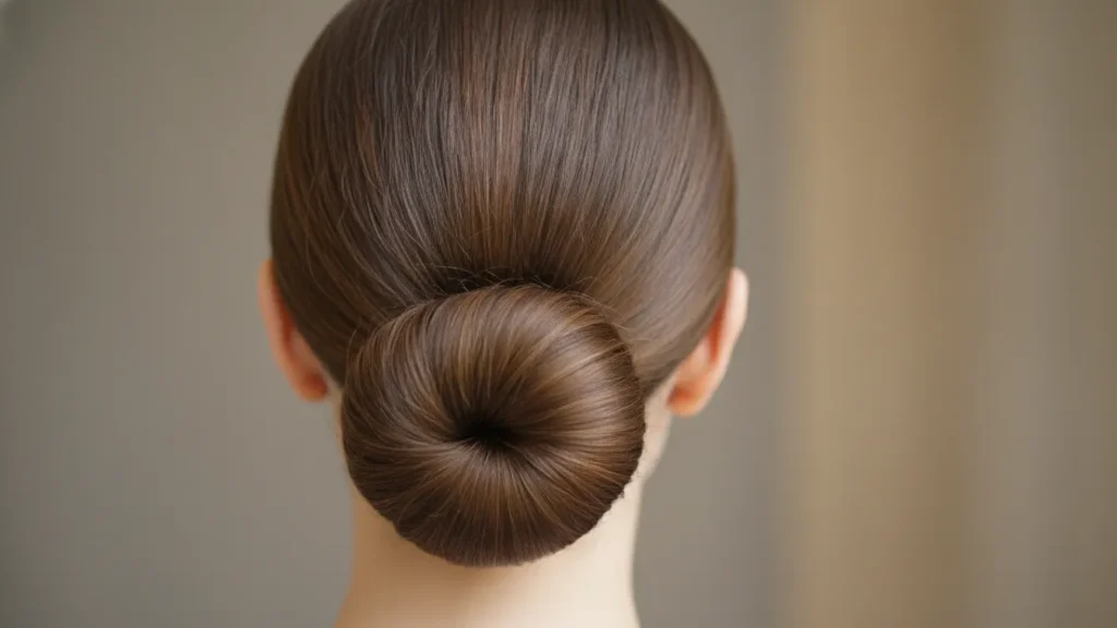 This one’s my go-to when I’m running late but still need to look put-together. Just smooth your hair back with a bit of gel or styling cream, twist it into a low bun at the nape of your neck, and secure with a hair tie. The key here is keeping those flyaways in check – a light hairspray does the trick.