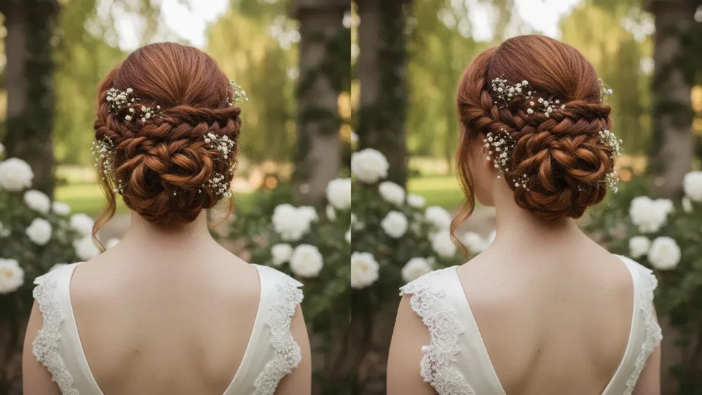 This romantic updo combines the best of both worlds – the polish of an updo with the softness of curls. Curl your hair first, then loosely pin sections up, leaving the curls visible and bouncy.
