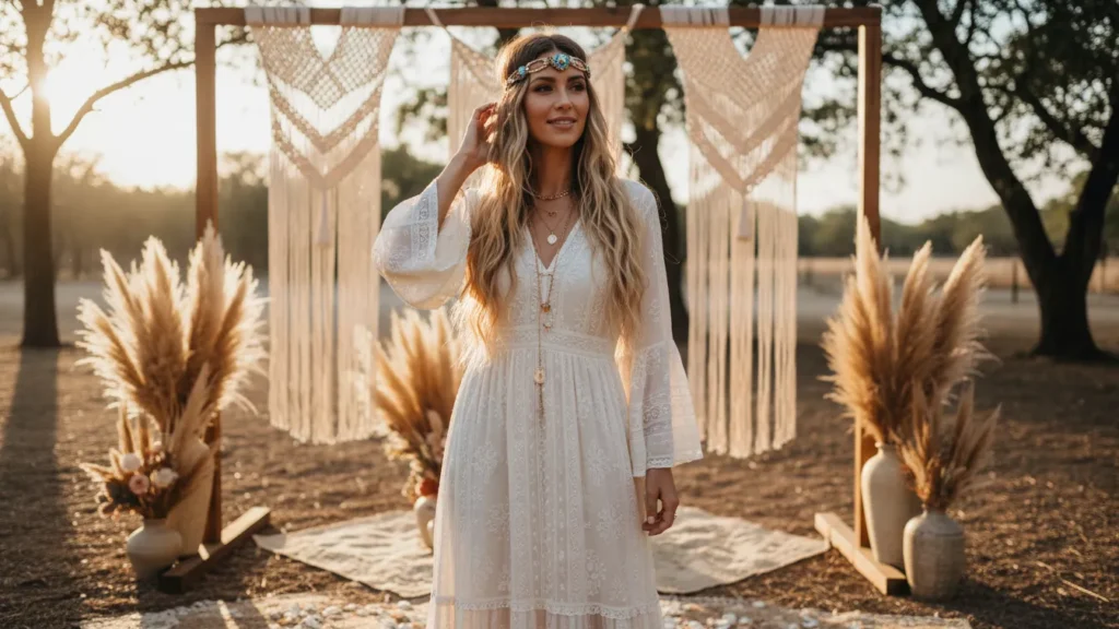 What I love about this style is how it channels that effortless festival vibe while still being elegant enough for a wedding.