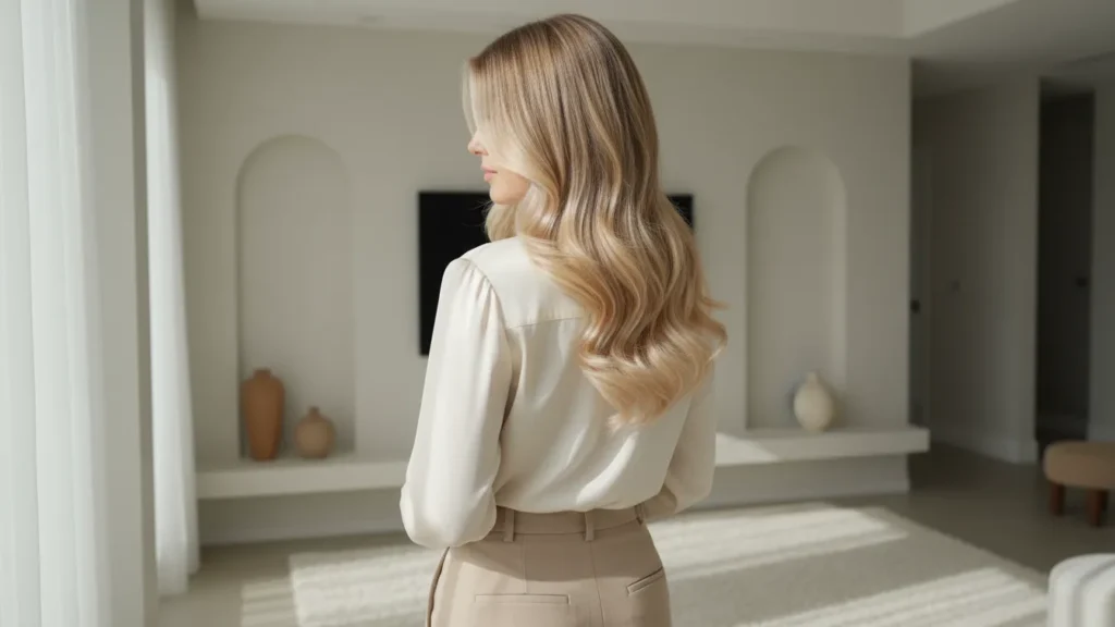 This is more subtle than golden blonde but warmer than platinum. It’s sophisticated, it’s elegant, and it photographs beautifully. If you’re already blonde and want to add dimension for fall without going darker, this is your answer.
