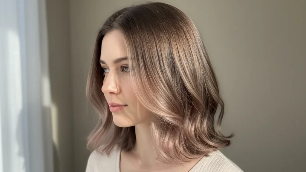 The key is keeping it subtle—not bubblegum pink, but a soft, warm rose gold that adds just a hint of something different to your look. On brown hair especially, this creates such a unique, dimensional effect.