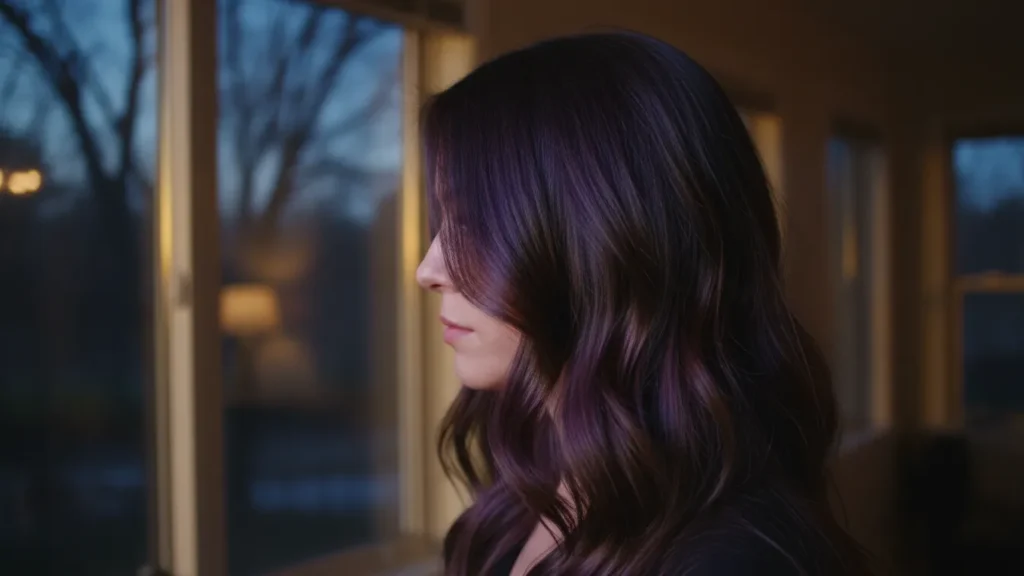 We’re talking deep purple tones that look almost brown in certain lighting but catch the light with this gorgeous violet shine. It’s bold, it’s different, but it’s still wearable for everyday life.