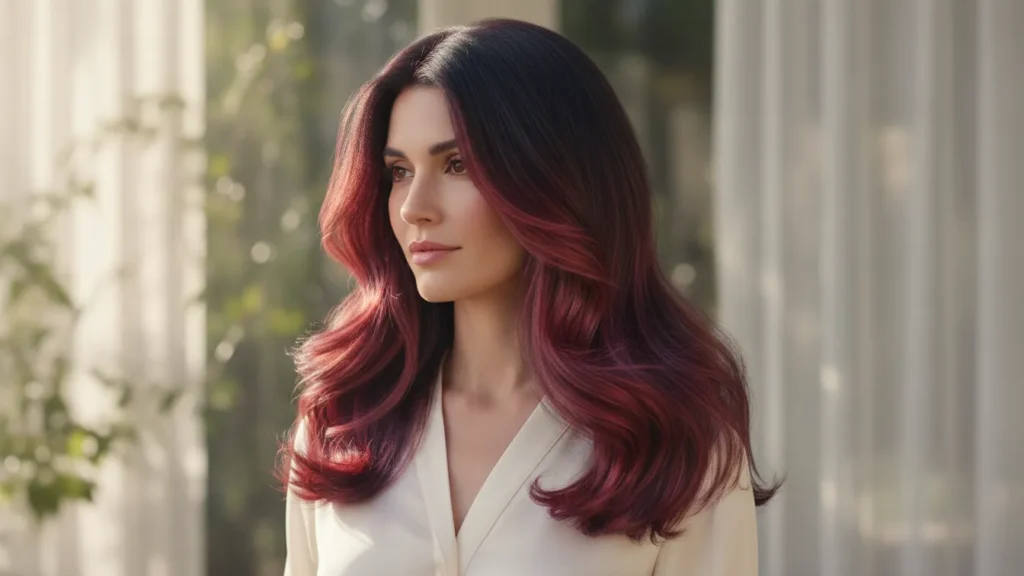 Chocolate cherry balayage combines deep chocolate brown with subtle cherry red tones. It’s sophisticated, it’s unique, and it has just enough personality to stand out.