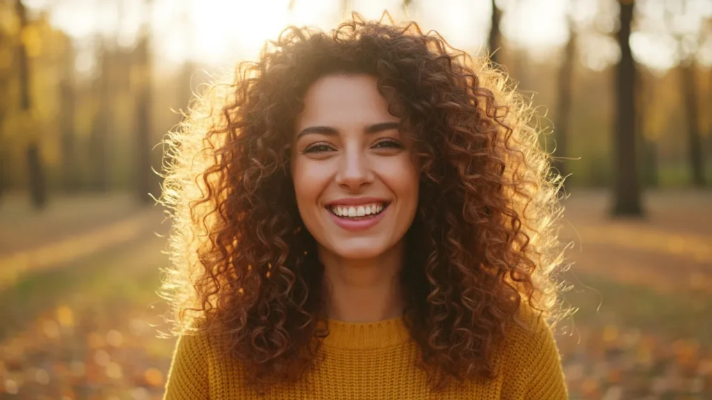 The amber tones bring warmth without compromising your curl integrity. What’s important here is finding a stylist experienced with curly hair—not all highlighting techniques translate well to textured hair.