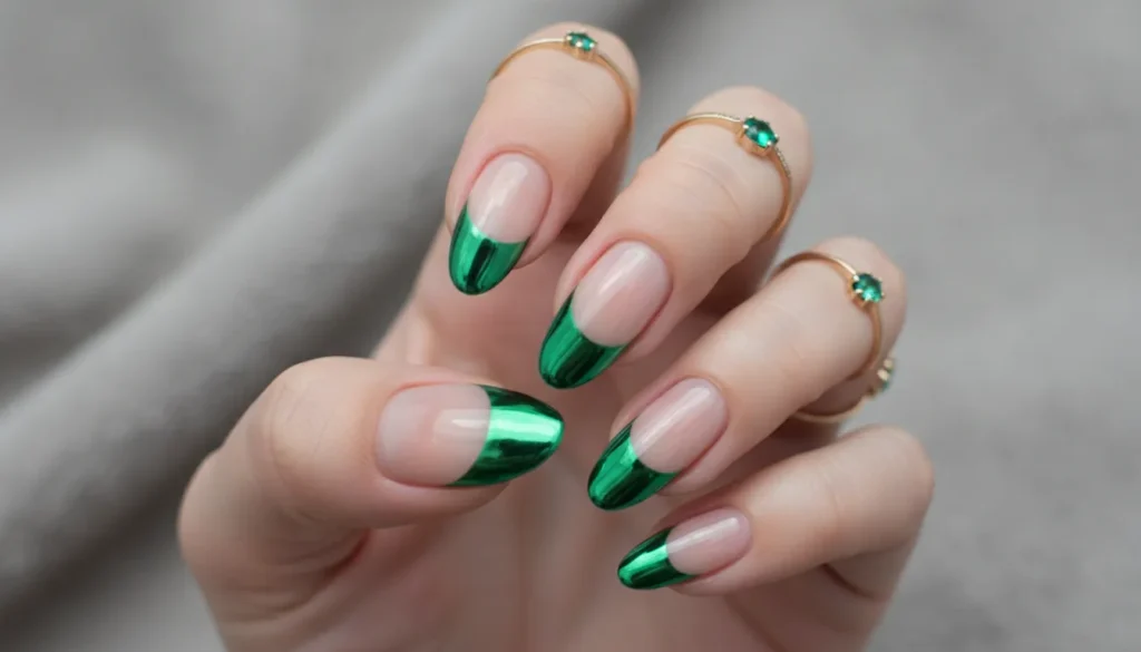 11. Emerald Green Metallic French Tips