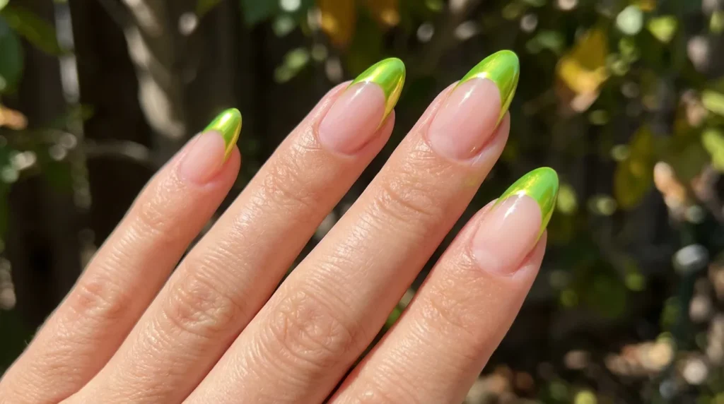 12. Lime Green Chrome French Tips