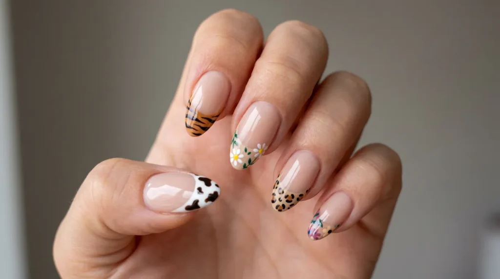3. Mixed Print French Tips