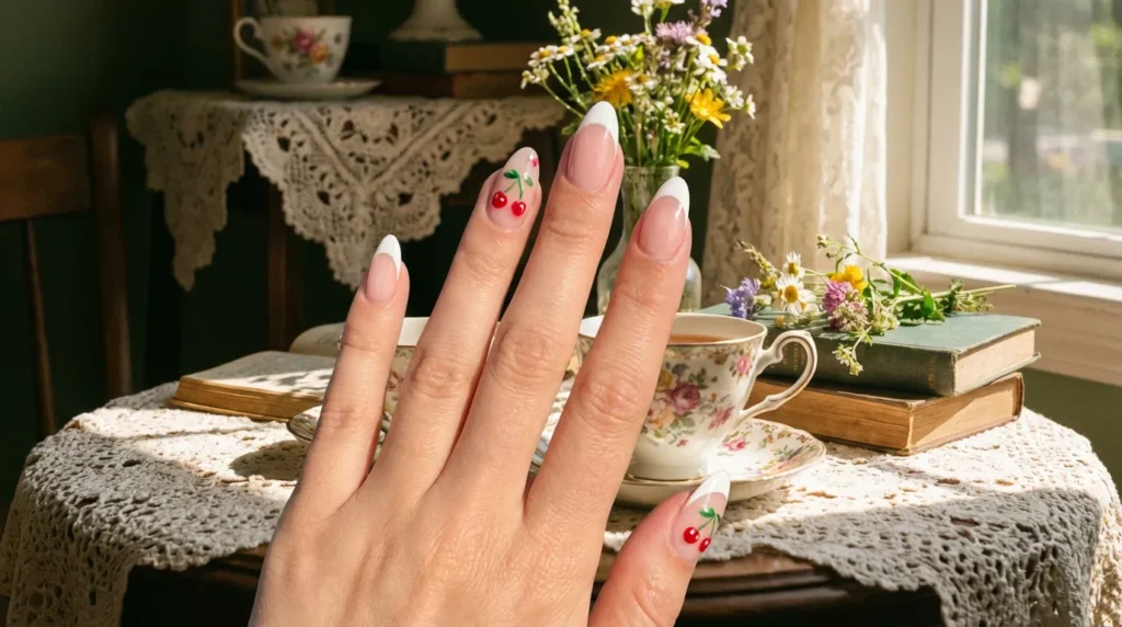 5. Cherry Accent French Tips