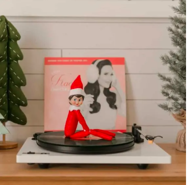 Position your elf lounging beside a record player or turntable with a Christmas vinyl. It’s a calm, elegant idea that feels different from the usual silly antics. It also reminds everyone to slow down and enjoy the softer side of the holidays, making it a lovely balance among the more playful setups.