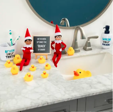 Arrange the elf among rubber ducks in the bathroom with a hand-written sign about waking up early. This scene adds joy to morning routines without needing extra props. It also ties in naturally with bathroom-time giggles.