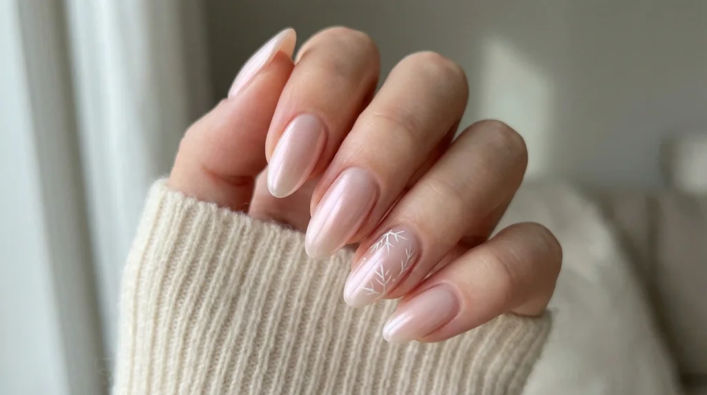 16. Pearl Chrome Gel Nails with Subtle Winter Accent