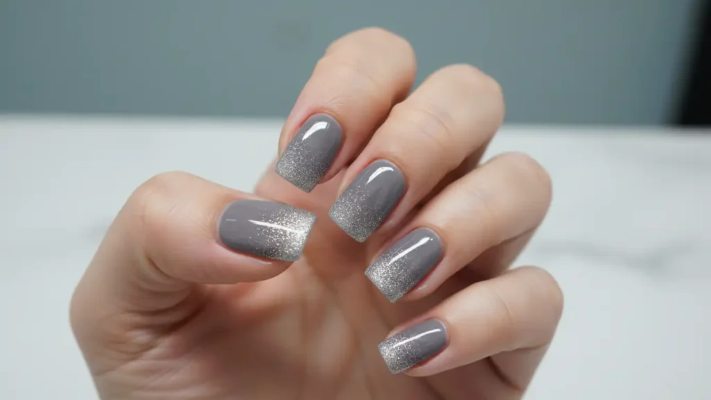Gray nails have this cool-girl appeal that I absolutely love. Add silver glitter at the tips and you get an edgy-yet-classy finish that’s perfect for a sleek, modern aesthetic.