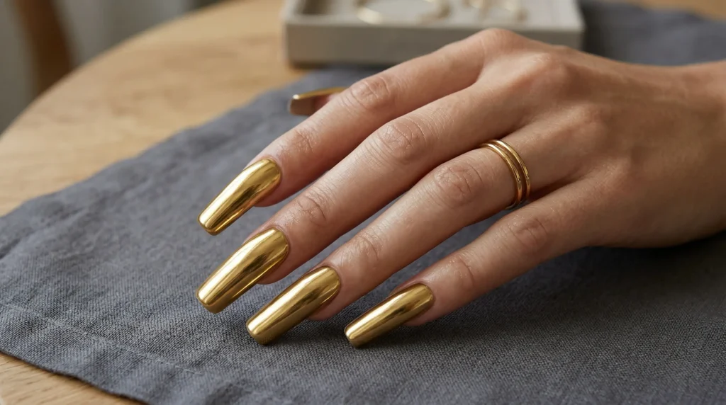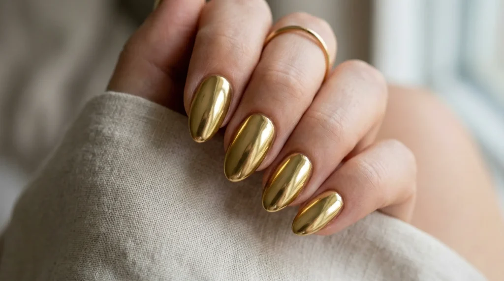 According to Allure, metallic nail finishes — especially golds in warm and rose tones — have consistently ranked among the most requested salon looks heading into 2026. That’s not a coincidence. It’s a shift in how we relate to elegance.