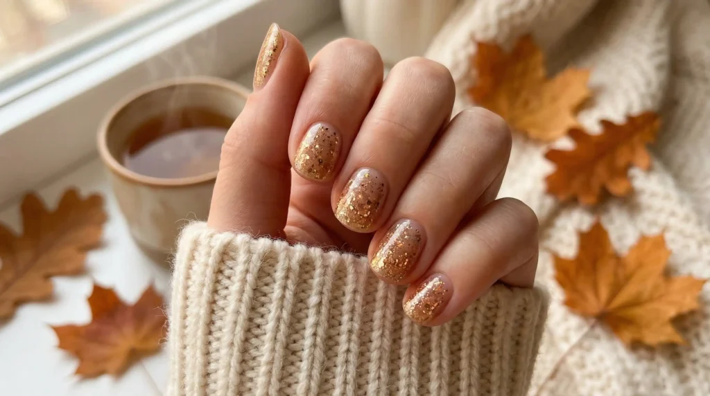11. Warm Gold Glitter with a Cozy Finish