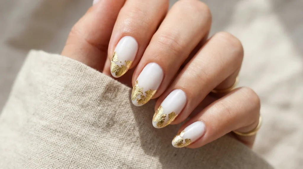 | Gold Foil French Tips | Casual elegance | Organic, irregular | Beginner |