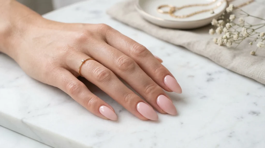 13. Soft Blush Almond Nails — The Timeless Classic