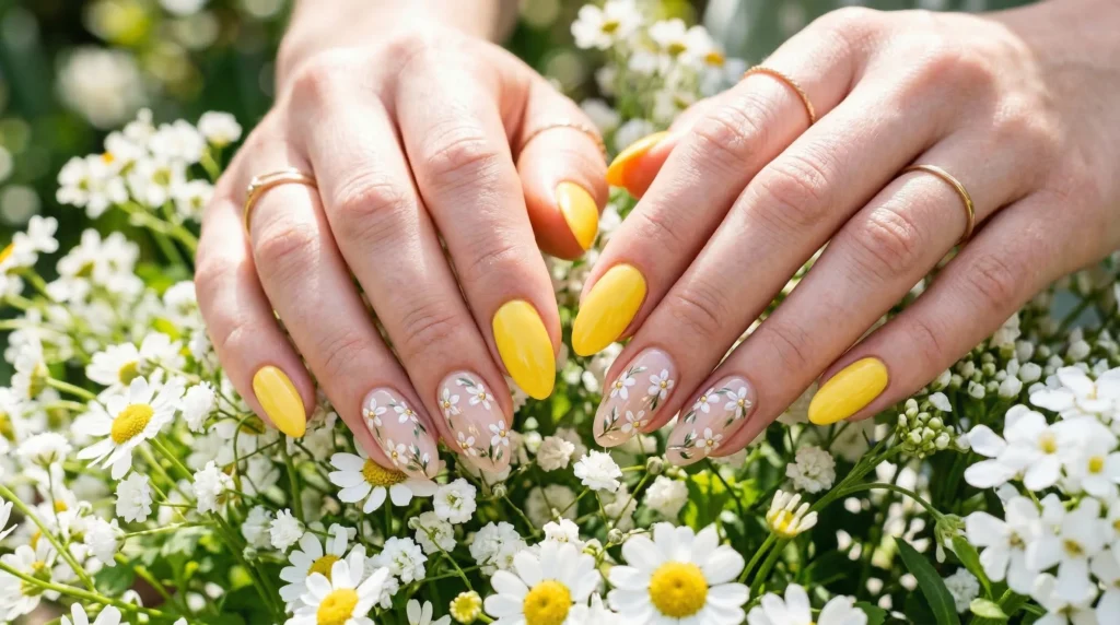 14. Sunny Yellow Floral Nails for a Joyful Graduation