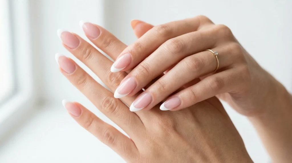 The trick with modern French tips is painting the white line in one smooth motion rather than building it up in sections. It takes a little practice, but the result is a fluid, natural line that looks intentional. According to many nail educators, the smile line should mirror the natural curve of your cuticle for the most balanced effect.