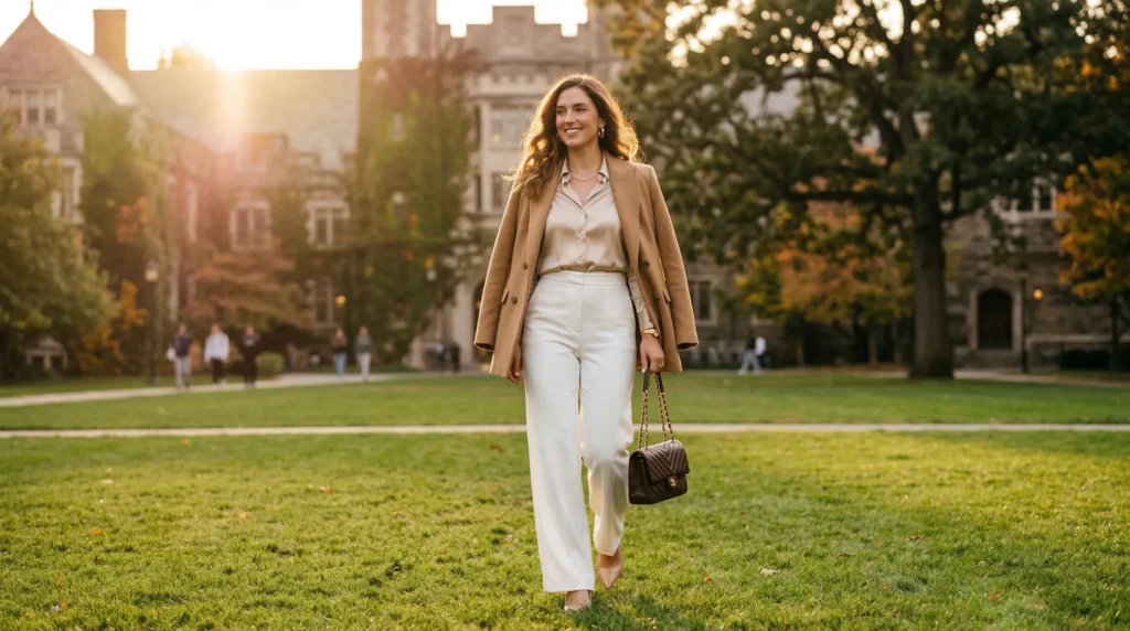 You might be wondering if all-neutral outfits read as boring in photos. They absolutely don’t — in fact, warm beige and cream tones photograph beautifully in natural light, which is exactly what most graduation ceremonies offer. This is one of those graduation guest looks 2026 you’ll reach for again and again.