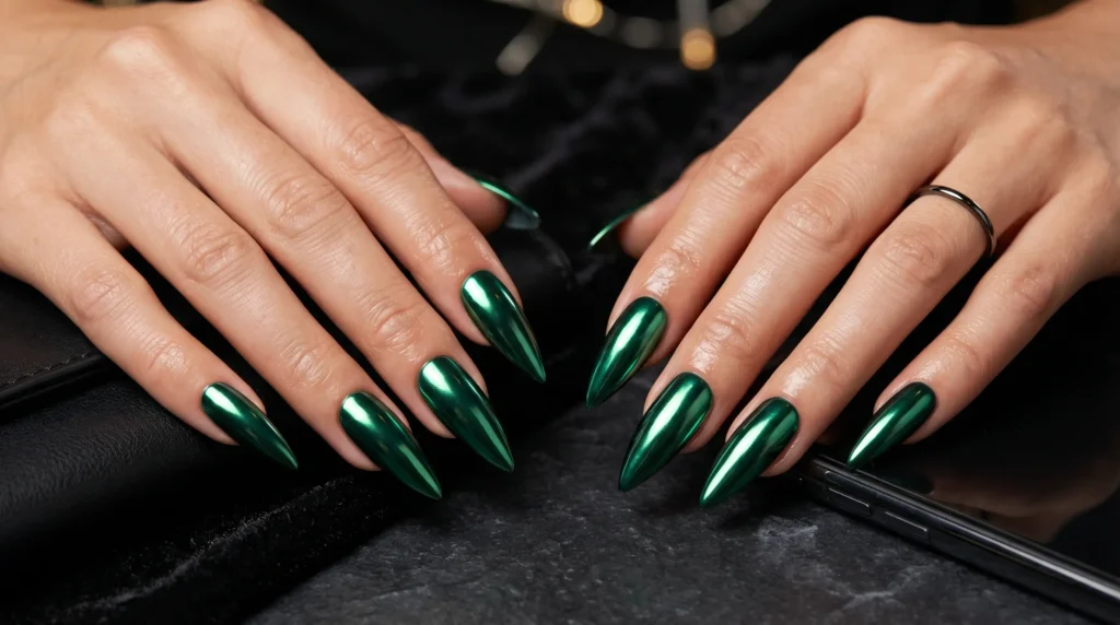 Emerald StilettoMirror chromeDeep emeraldBold moods