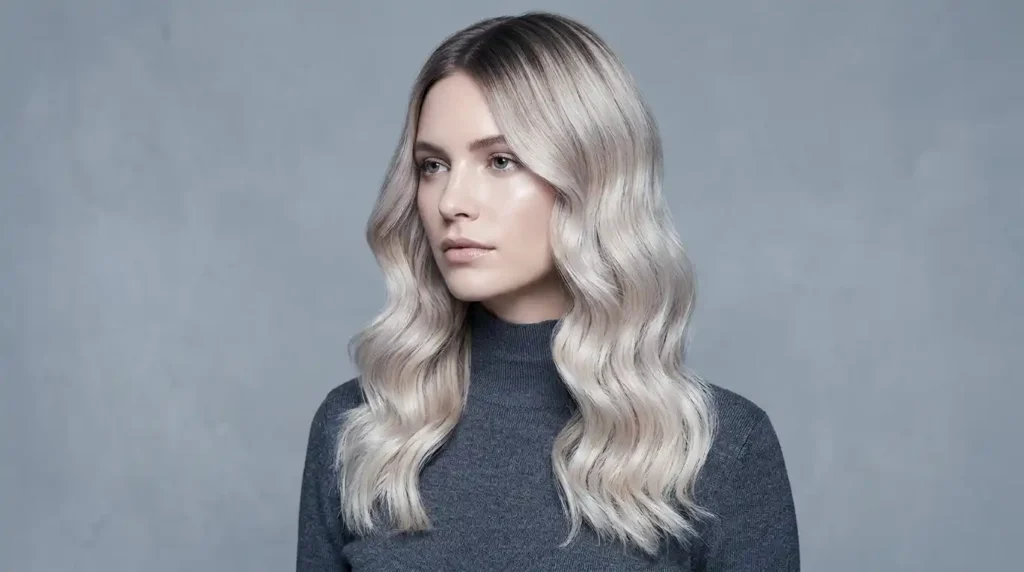Things shift cooler here — but not icy or harsh. A soft shadow root meets pearly, almost silvery blonde ends. It’s incredibly modern.