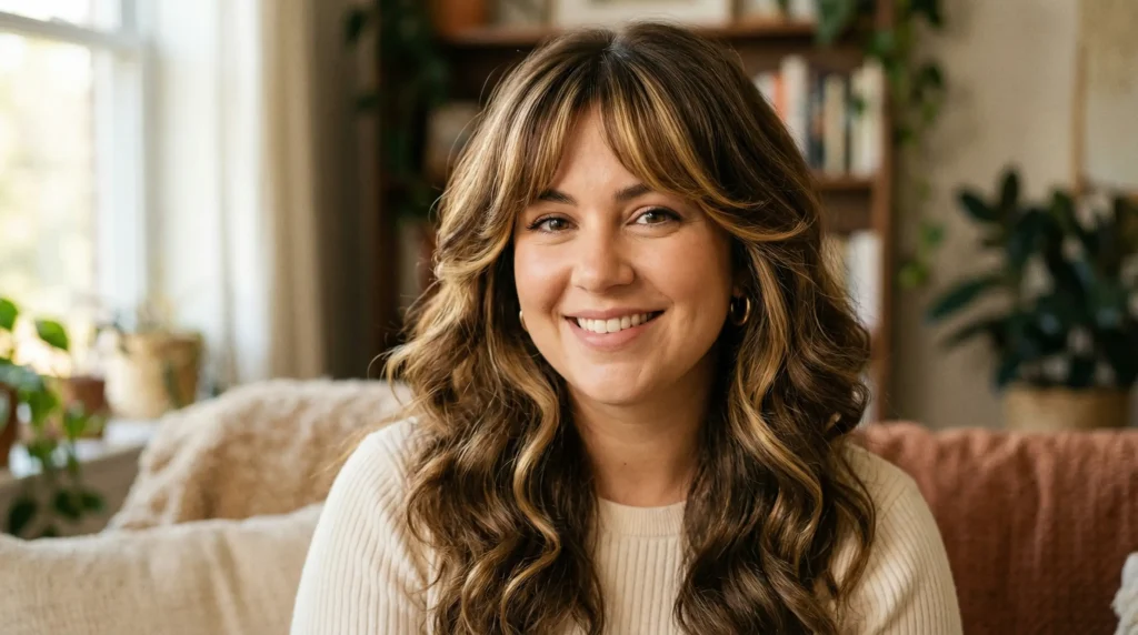 Now here’s where it gets interesting — 2026 is bringing back movement. Feathered ends, curtain bangs, ribbon-like face framing, shags. All of it plays beautifully on round face shapes.