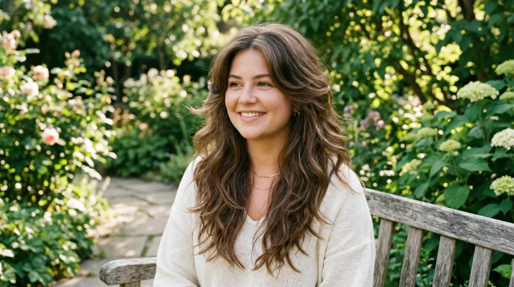 Round faces tend to be equally wide and long, with soft, curved jawlines. The goal with any haircut for round face 2026 is to create the illusion of more length and less width. Layers do exactly that — they add vertical movement, draw the eye downward, and reduce bulk at the sides where you don’t want it.