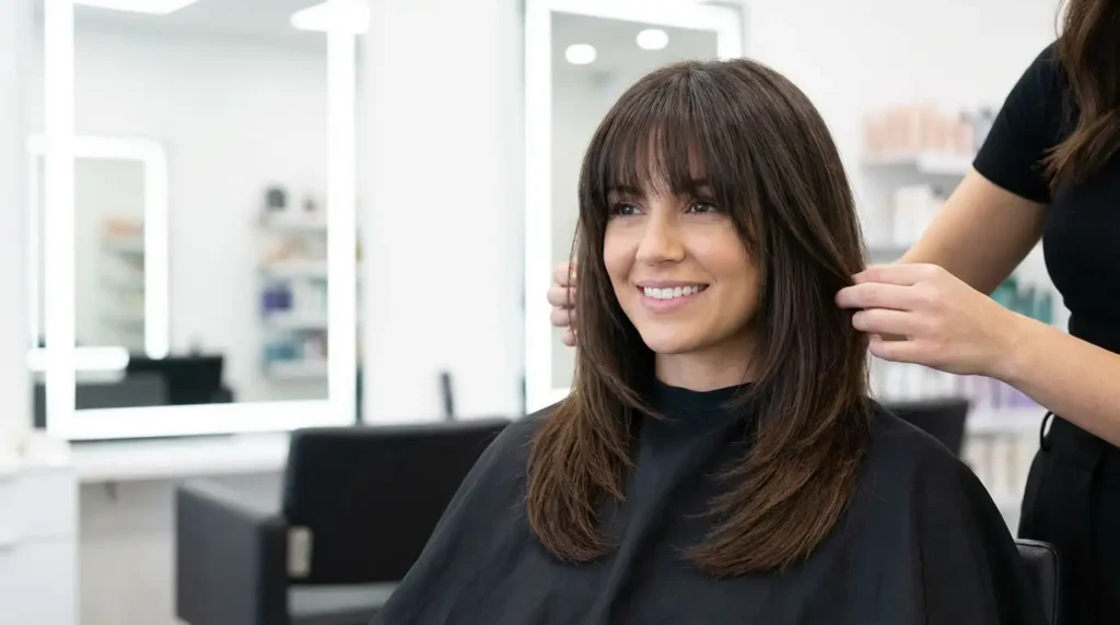 Instead, try something like: “I’m growing out my bangs and I want to keep them looking intentional during the process. Can we do face-framing layers that blend them in?” or “I want to maintain some fringe while growing them out—what would you suggest?”