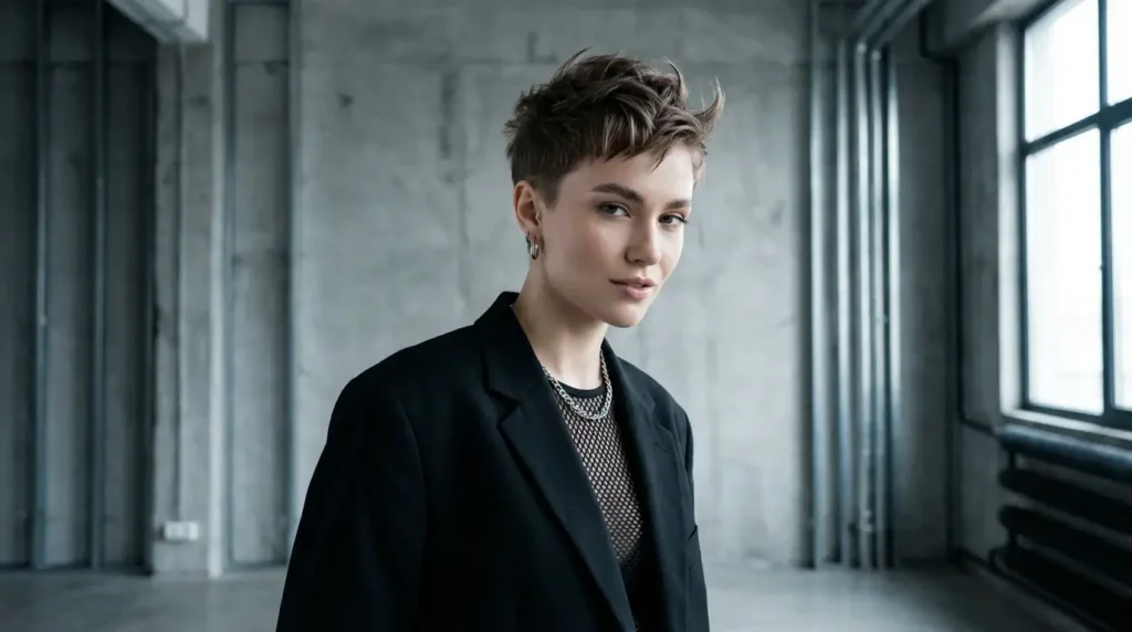 This works especially well if you’re growing out super short bangs. It’s got that cool androgynous vibe that feels modern and fresh.