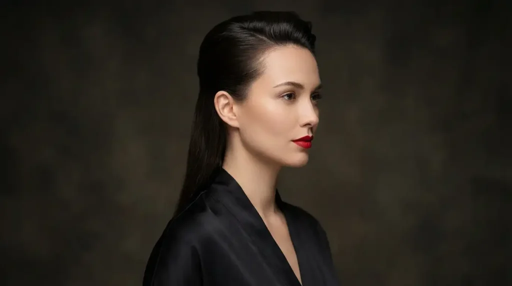 Secure with bobby pins if your bangs are being stubborn (mine always are), and finish with medium-hold hairspray. The key is getting enough volume at the roots so it doesn’t look too severe or slicked down.