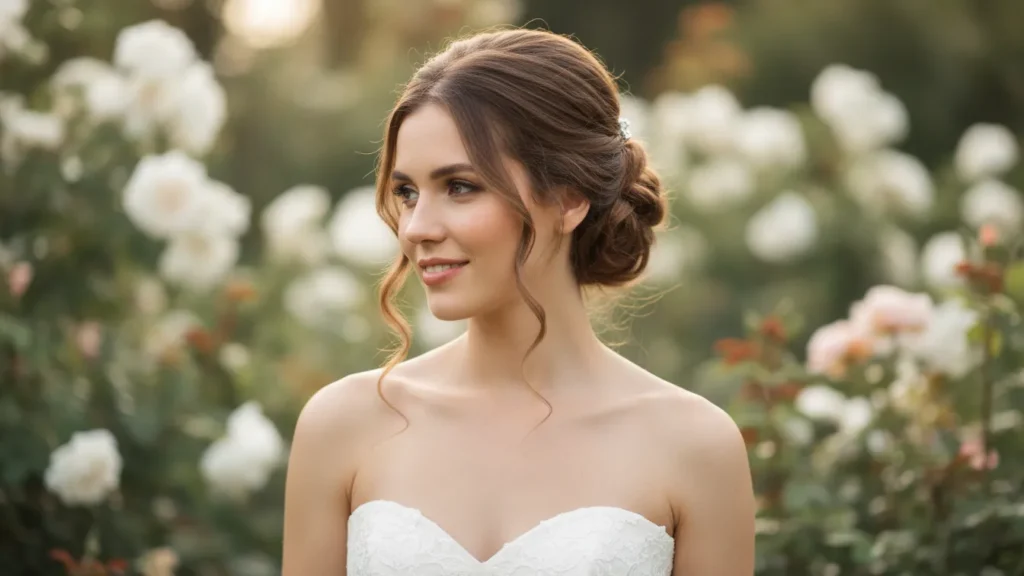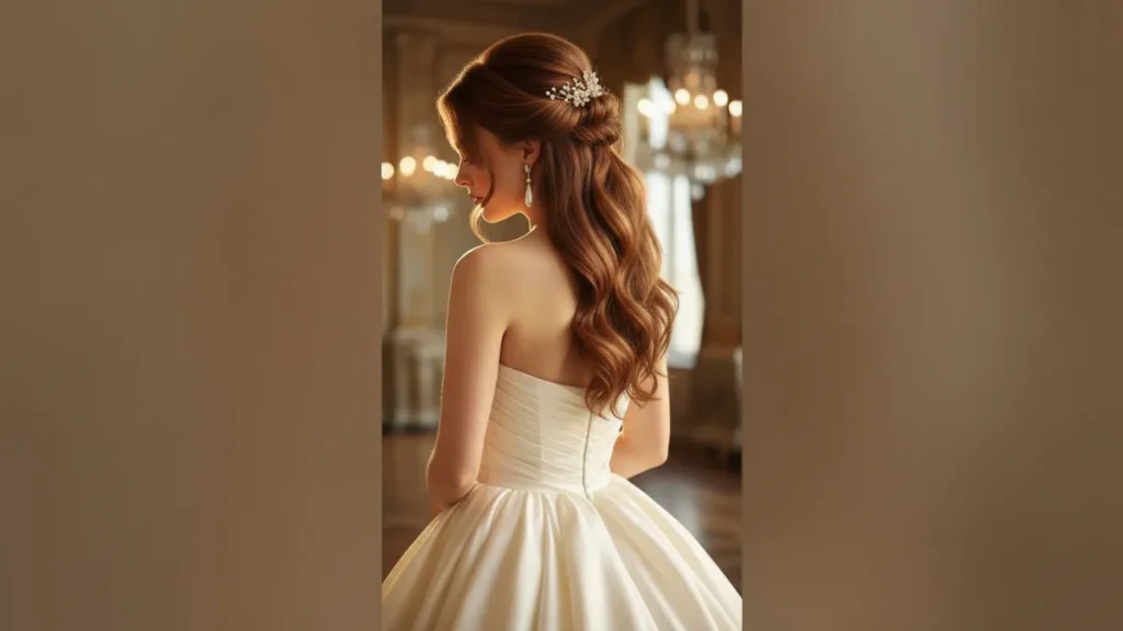 For wedding hairstyles for strapless dresses, think elegant and timeless. Classic updos, romantic half-up styles, and soft waves all work beautifully. Add delicate accessories like flowers or crystal pins.
