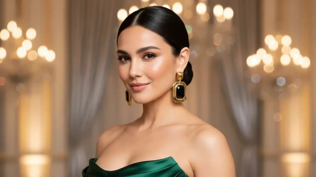 It’s the kind of hairstyle that says “I woke up looking this good” while still being totally event-ready. Add statement earrings and you’re set for prom, weddings, or fancy dinners.