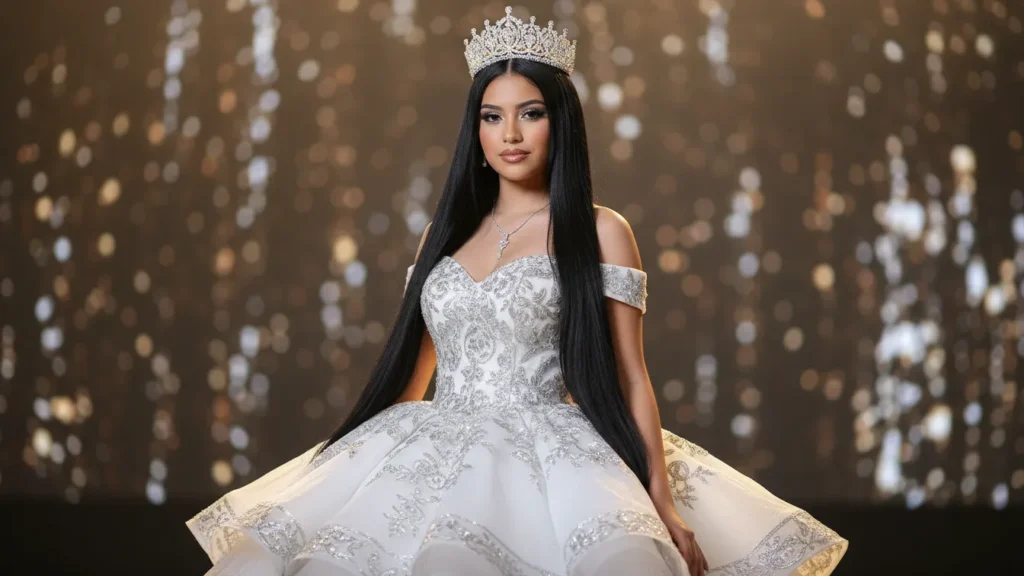 It’s perfect for strapless dresses because it keeps the neckline clean while letting the crown shine. Whether it’s a quinceañera, prom, or your royal moment, this style is princess magic with a modern edge.