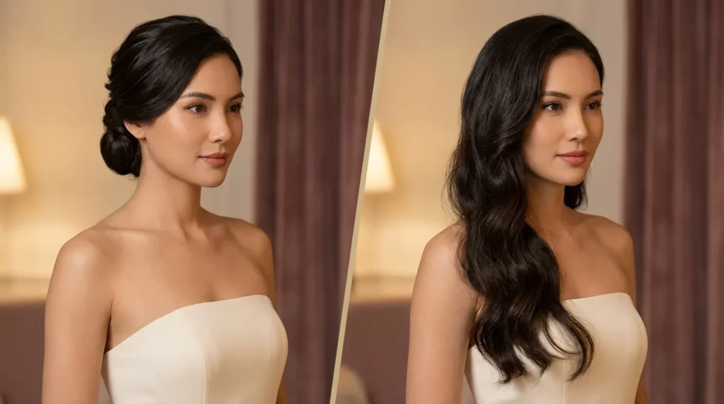Choosing hairstyles for strapless dresses really comes down to what makes you feel confident and beautiful. There’s no single “right” answer—it’s about finding the style that works with your dress, face shape, personal style, and event.