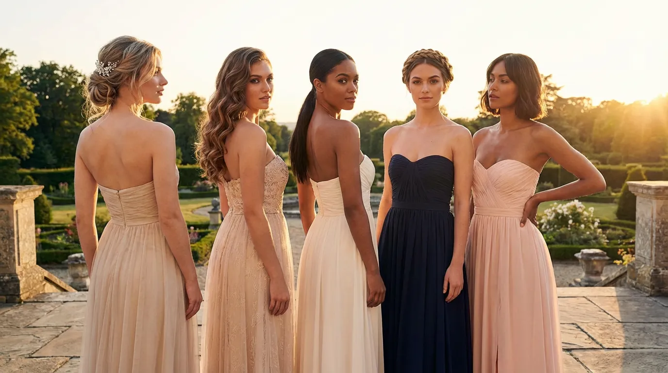 Now here’s where it gets interesting: different hairstyles for strapless dresses work better for different occasions, face shapes, and personal styles. What’s perfect for a summer garden wedding might not work for a black-tie gala.