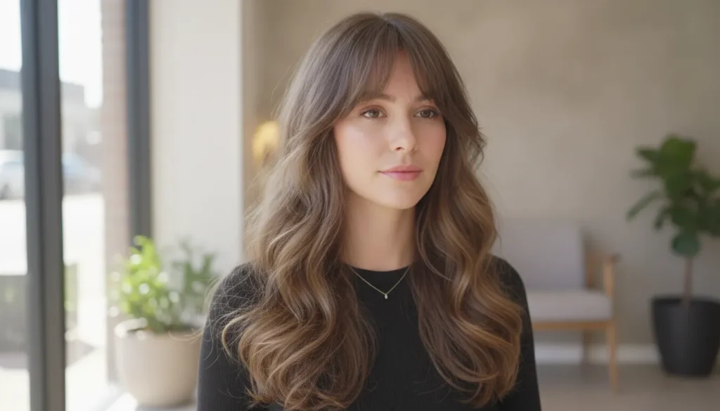 1. Long Flowing Waves with Wispy Bangs