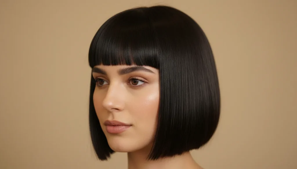What I love about this style is how the blunt fringe contrasts with slightly softer ends. It gives you that perfect balance between edgy and elegant.