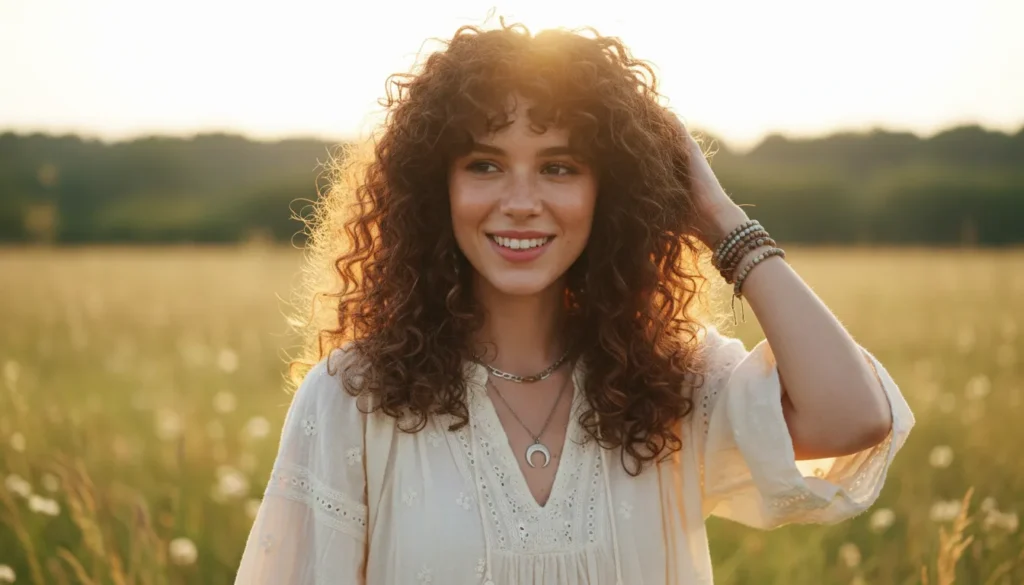 Let’s talk about curly bangs for a second. They’re absolutely gorgeous and way more versatile than people give them credit for. These soft, curly bangs blend right into your natural waves and create this effortless, bohemian vibe.