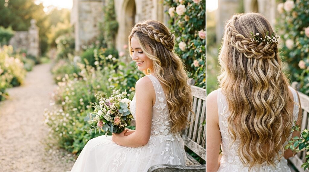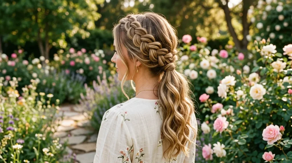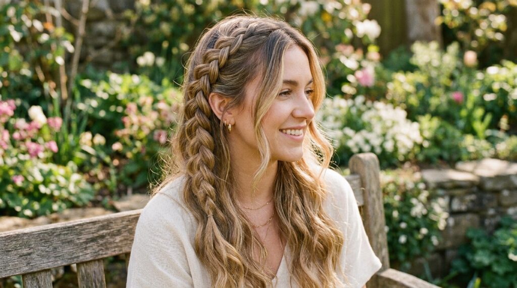 | 5 | Loose Dutch Braid into Romantic Twist | Dutch crown braid + waves | Spring weddings, garden events | Medium–thick |
