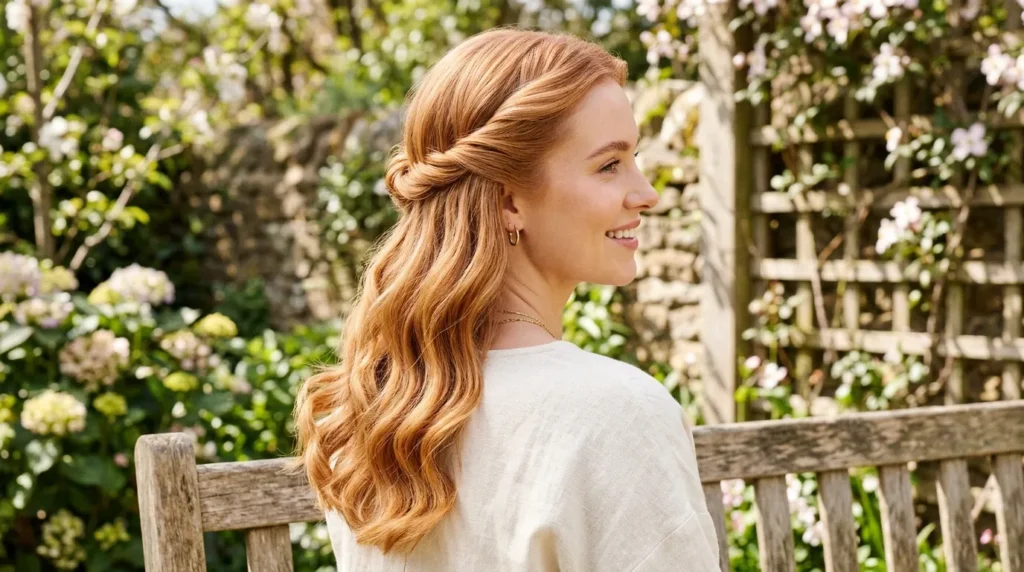 | 9 | Polished Strawberry Twist with Waves | Halo twist + soft waves | Sunday brunch, garden weddings | Medium–long |