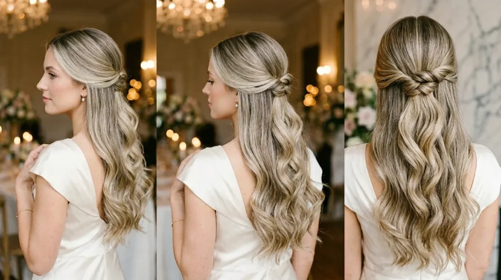 Before you confirm with your stylist or start styling at home, here’s what actually matters when choosing the right half up half down hairstyles 2026 wedding look for your specific situation.