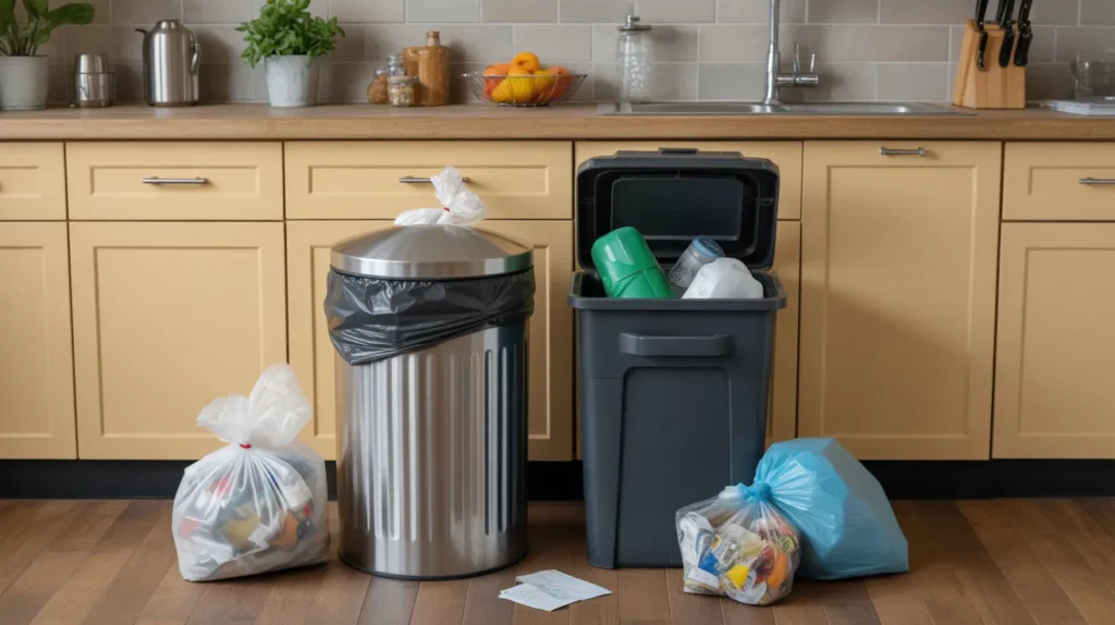 An overflowing trash can or recycling bin instantly makes the kitchen feel chaotic, no matter how clean the counters are. Bags sticking out, lids not closing properly, and stray bits on the floor all add to that “messy home” feeling. Using slightly smaller bags you empty more often, or setting a routine time to take trash out, helps control this habit. A fresh, closed bin quietly supports the feeling that your home is under control.