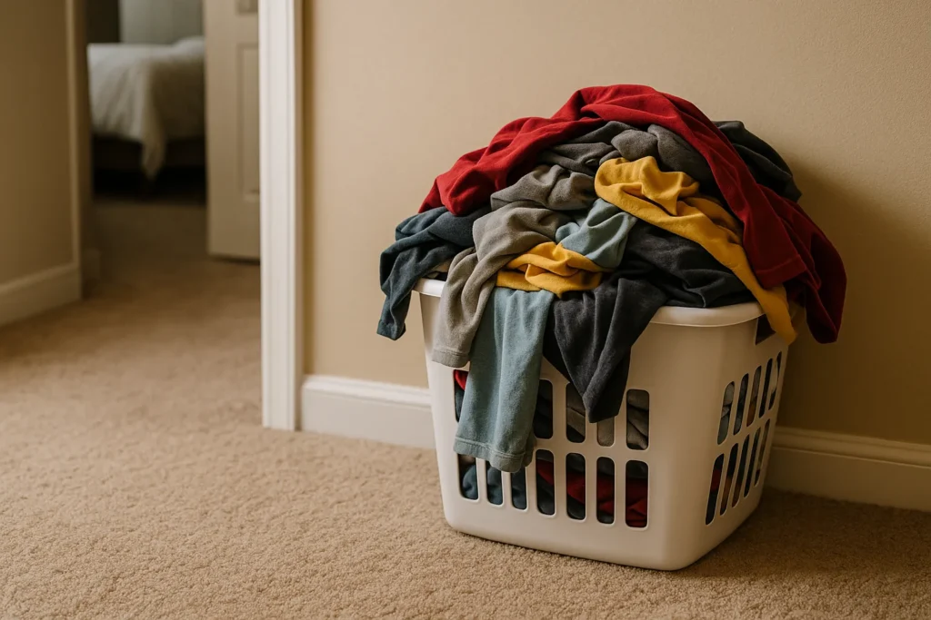 Overflowing baskets send a loud message: “You’re behind.” Even if the rest of the room is tidy, that heap of clothes in the corner can make you feel like you’re drowning in chores. This is one of those home clutter habits that builds slowly with “I’ll do it later” energy. Doing smaller, more frequent loads and folding right away keeps laundry from becoming a stressful mountain that visually clutters your home.