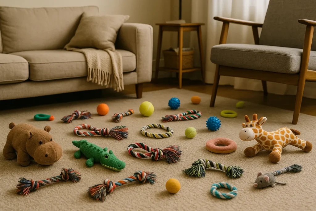 Pet toys scattered across the floor are adorable… until you trip over a squeaky bone in the dark or notice every room has something fuzzy lying around. When toys live under the coffee table, in walkways, and between cushions, it makes even a clean home feel messy. A soft basket or bin in each main room lets you toss everything in at the end of the day without overthinking. Your pet still has easy access, but the house feels calmer and less chaotic.