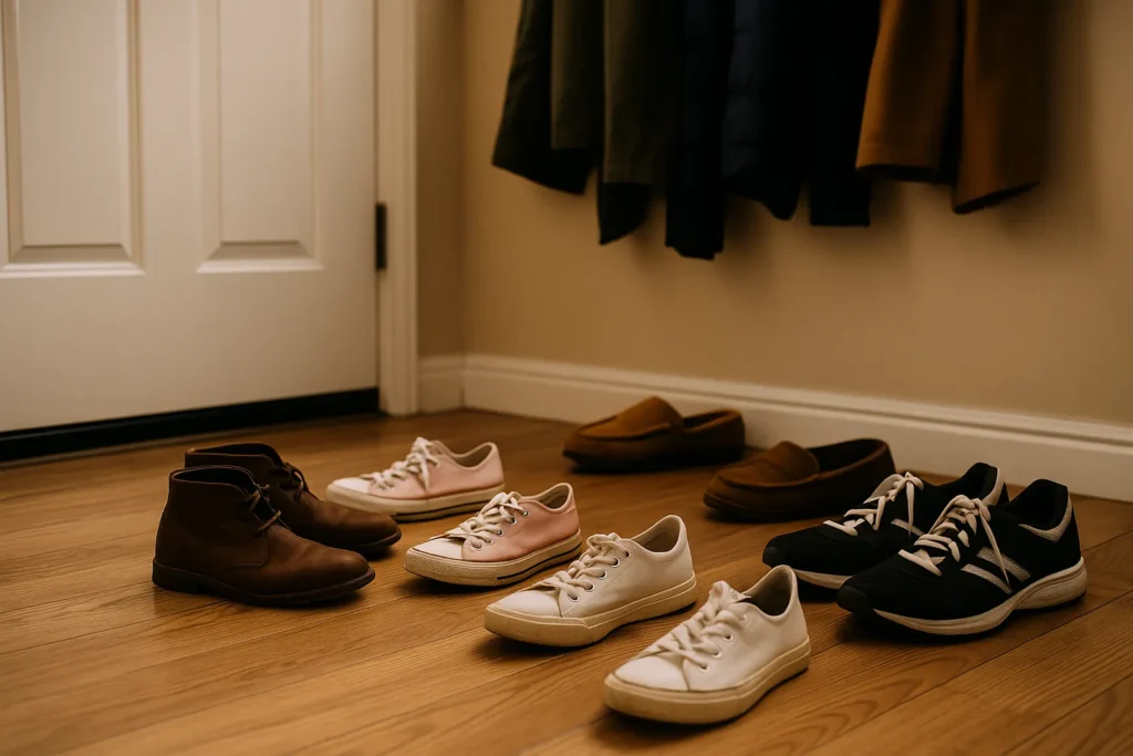 Shoes piling up at the door is one of the most common home clutter habits, and it instantly makes the entryway feel cramped and chaotic. Even if the rest of your home is spotless, a messy doorway sets the tone for everything else. The simplest fix? A slim shoe rack, a soft basket, or even a hidden tray that tucks shoes neatly out of sight. This small shift transforms the first impression of your home from cluttered to calm.