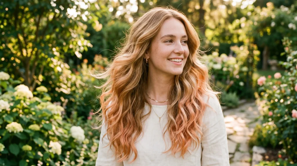 This is honey blonde hair color at its most magnetic. The golden warmth at the roots transitions into a soft peachy melt at the ends, giving the whole look a sunlit, spring-forward feel that’s almost edible. Long, sweeping waves let the color breathe, and the face-framing pieces add that flattering softness that stylists say works on almost every face shape.